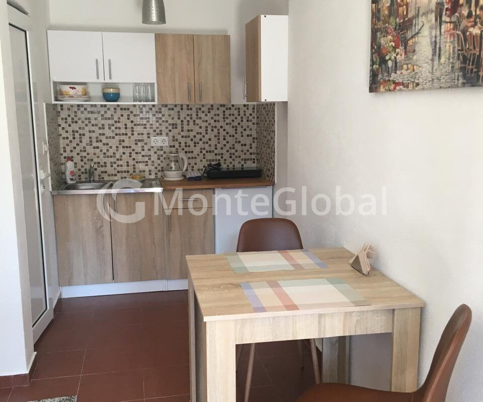 Im Erdgeschoss befinden sich ein Studio-Apartment mit Bad und Kochnische sowie eine Garage.