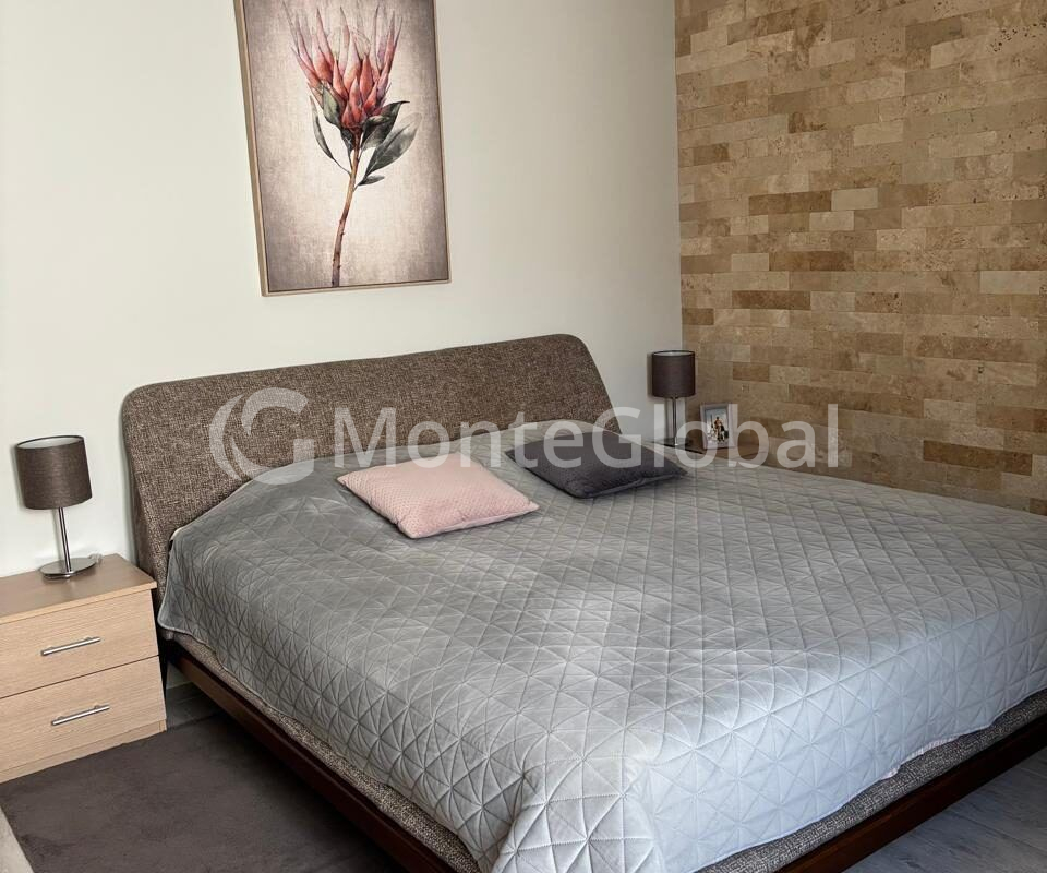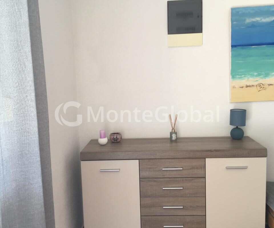 Im zweiten Stock gibt es ein Wohnzimmer mit integrierter Küche, ein Schlafzimmer, ein Badezimmer und eine geräumige Terrasse. Über eine Außentreppe gelangt man in den zweiten Stock.