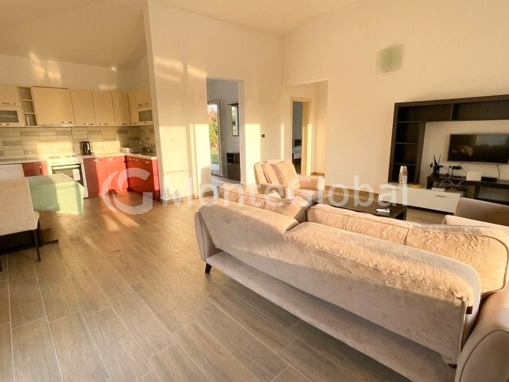 Das Haus ist komplett möbliert und mit allen notwendigen Haushaltsgeräten ausgestattet. Es verfügt über zwei Schlafzimmer, eine geräumige Küche, ein gemütliches Wohnzimmer, ein Badezimmer und eine private Terrasse, auf der Sie Sonnenauf- und -untergänge genießen können. Bequeme Erreichbarkeit und ein eigener Parkplatz sorgen für maximalen Wohnkomfort.