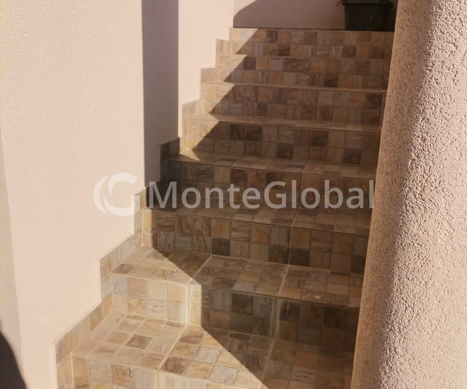 Im zweiten Stock gibt es eine Küche, ein Wohnzimmer, zwei Schlafzimmer, ein Badezimmer und eine Terrasse