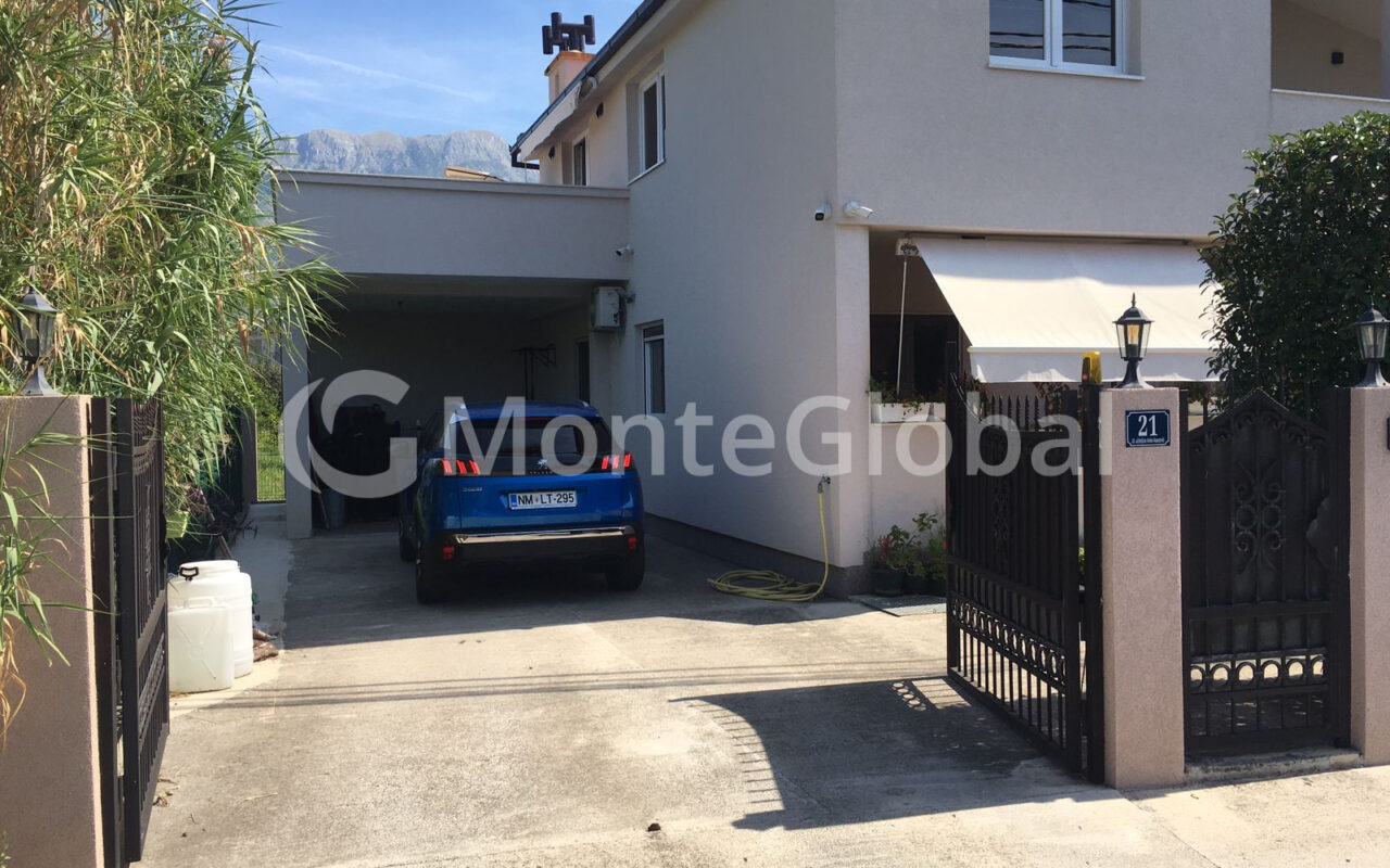 Das Haus verfügt über zwei Einfahrten, einen Parkplatz für fünf Autos und eine Garage