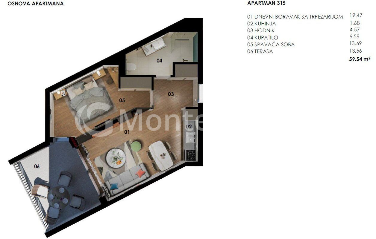 Wohnungsfläche: 59,54 m² + Terrasse 13,5 m²