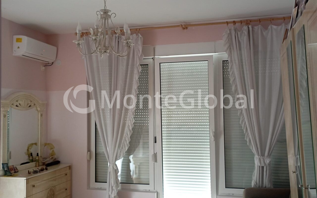 Nr. 9; Fläche 27 qm m, 1 Zimmer, Badezimmer/Terrain (Fußbodenheizung), spanische Fliesen, Balkon, 2 Ausgänge. Französisches Bett, Kleiderschrank, 2 Nachttische (Italien), Klimaanlage, Parkettboden.