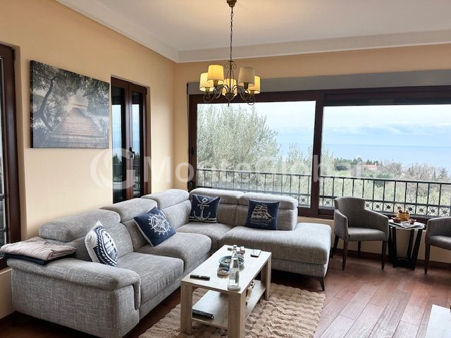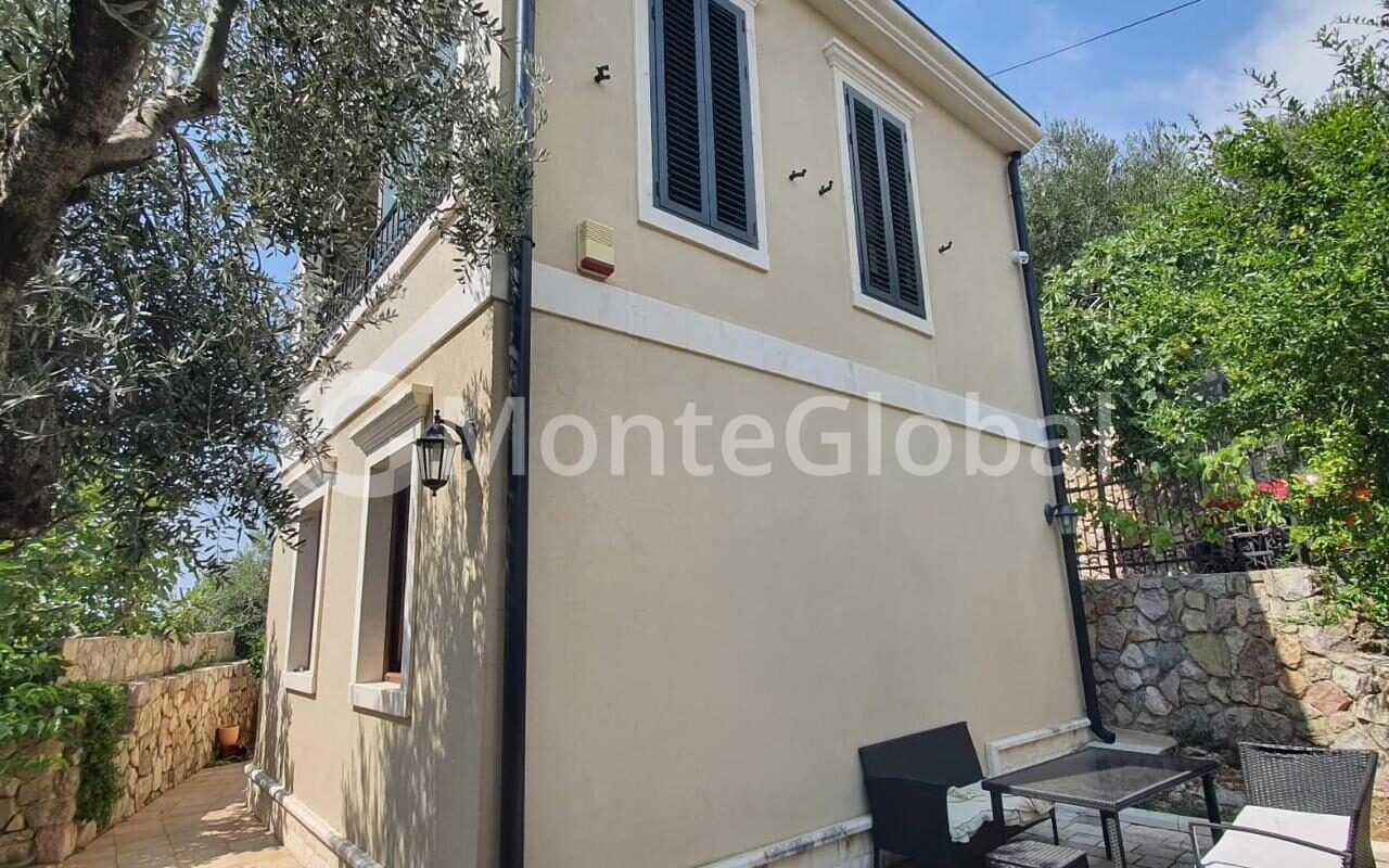 Die von viel Grün, Olivenbäumen und Pinien umgebene Villa bietet ein herrliches Panorama auf das Meer und die umliegende Landschaft.