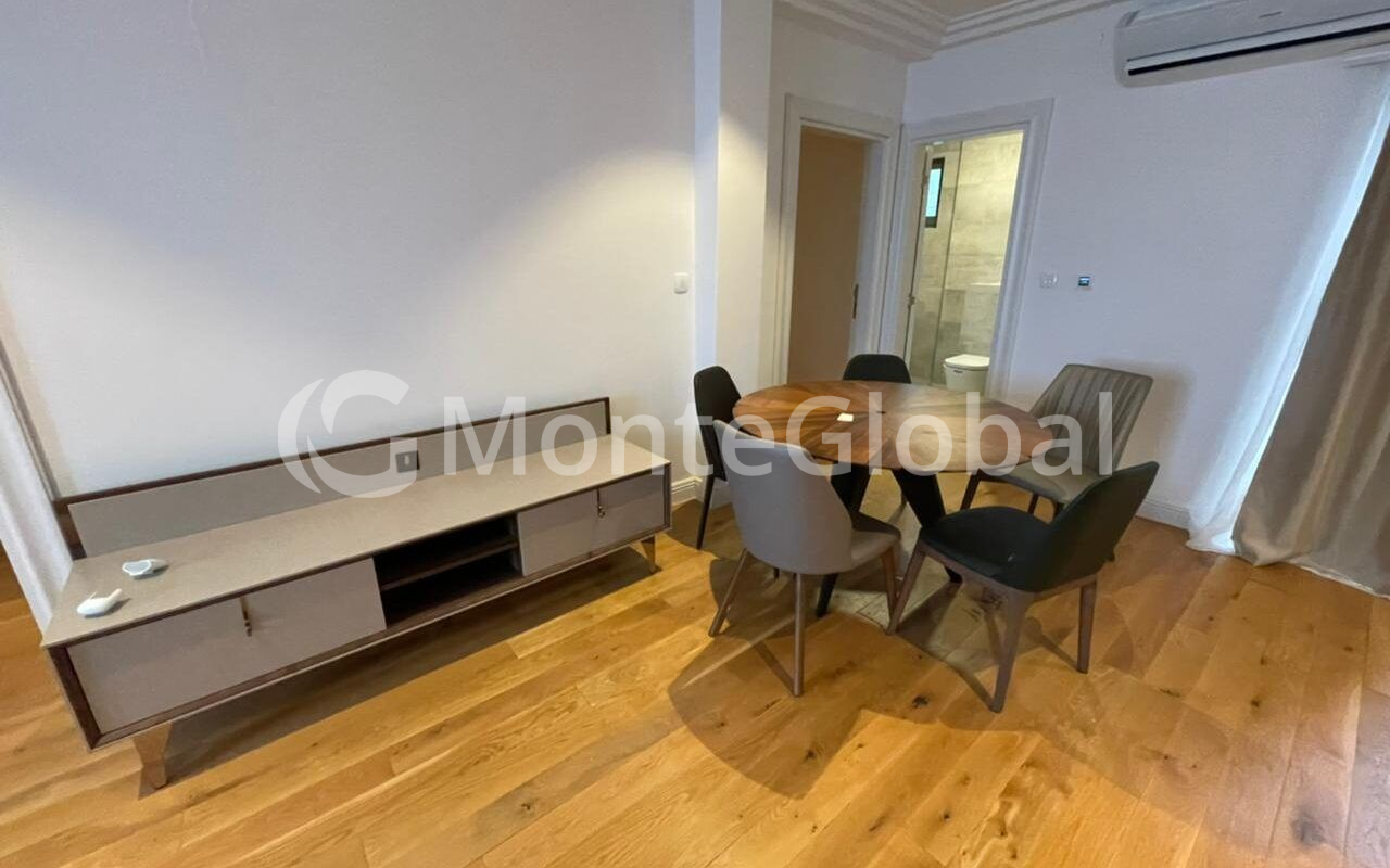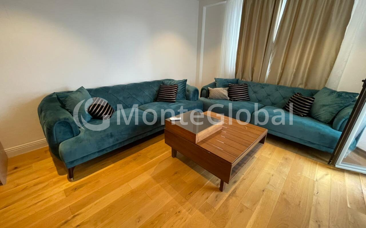 Die Wohnung ist komplett mit modernen und hochwertigen Haushaltsgeräten und Möbeln ausgestattet.