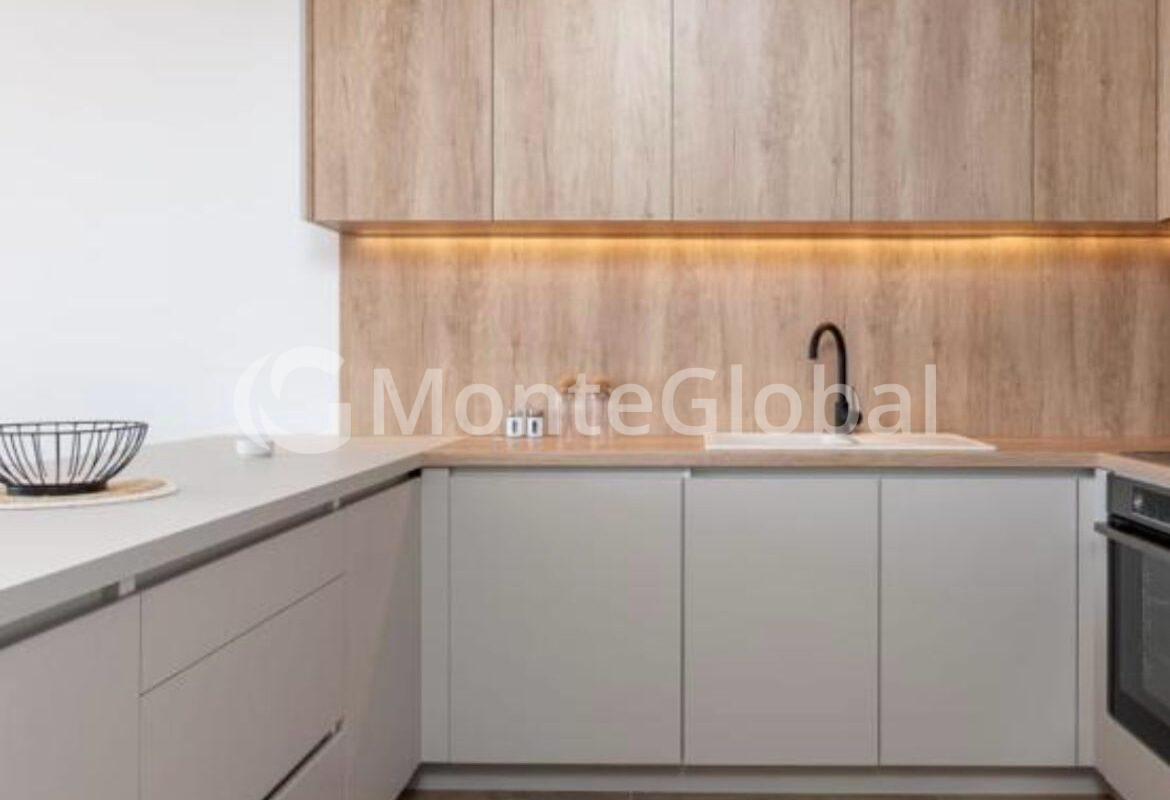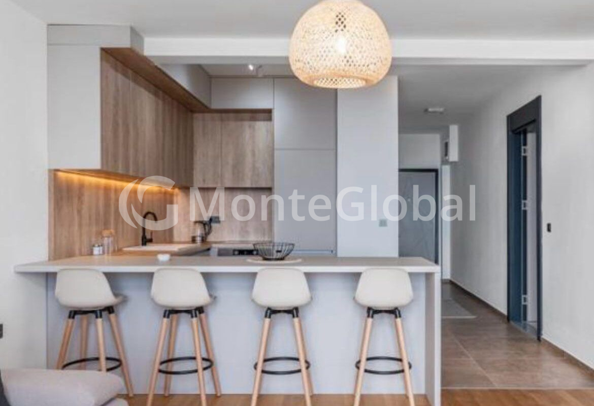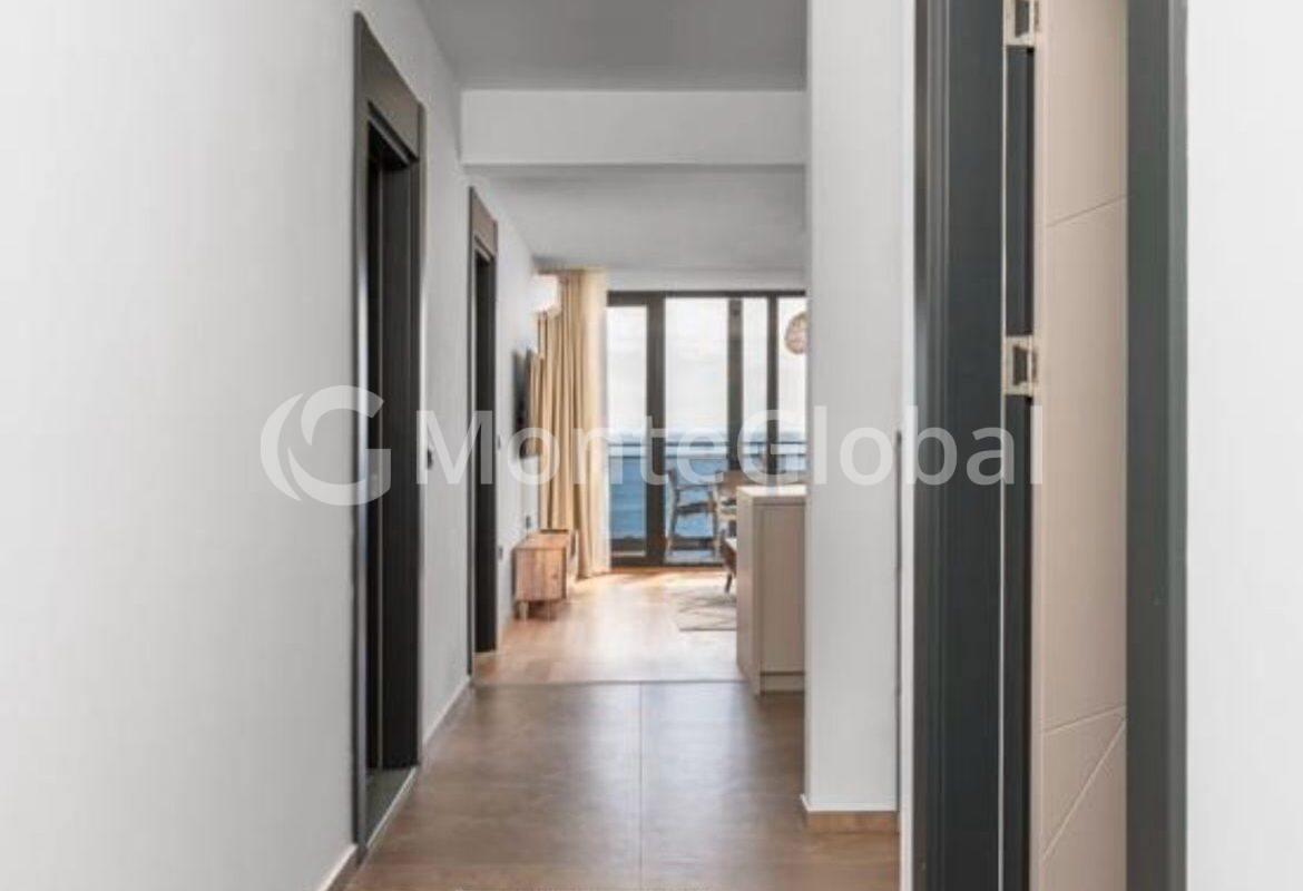 Die Wohnung besteht aus einem Wohnzimmer mit Küche, zwei Schlafzimmern, einem Badezimmer und einer Terrasse mit Meerblick.