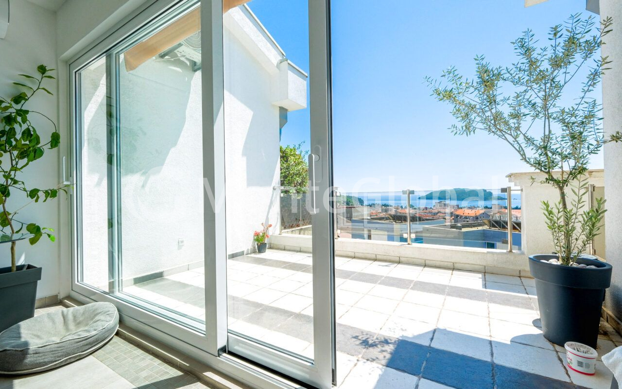 Wir bieten Ihnen eine geräumige 65 m² große 1-Zimmer-Wohnung mit atemberaubendem Panoramablick auf Budva und die Adriaküste.