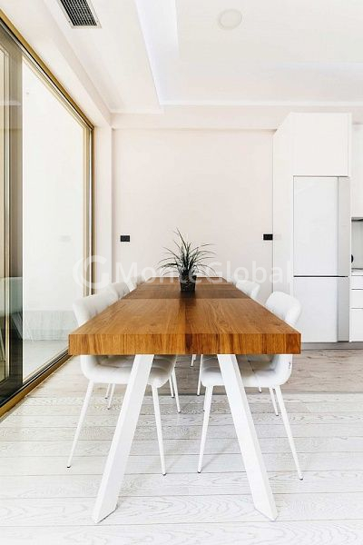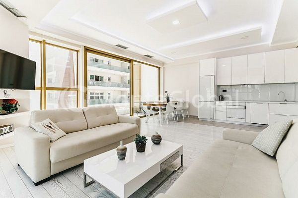 Die Wohnung verfügt über ein geräumiges Wohnzimmer, einen Essbereich, zwei Schlafzimmer, zwei Badezimmer, einen Hauswirtschaftsraum und eine Terrasse mit Blick auf die Stadt.