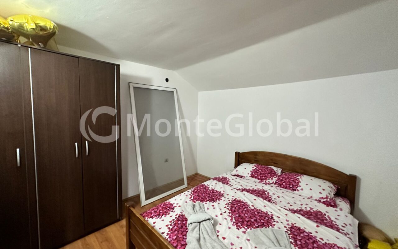 Auf der zweiten Etage gibt es ein Wohnzimmer, eine Küche mit Esszimmer, zwei Schlafzimmer, ein Badezimmer und eine Terrasse mit Meerblick.