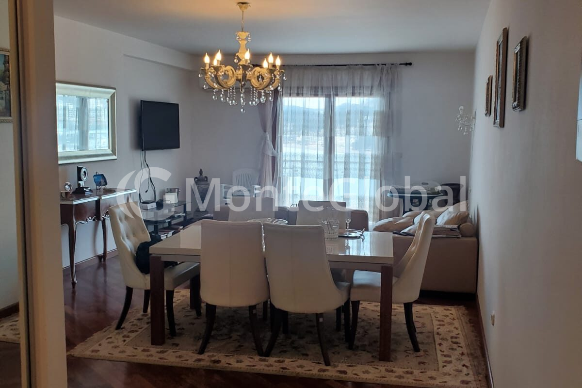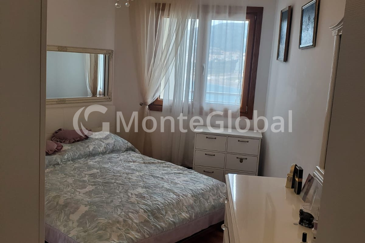 Die Struktur der Wohnung besteht aus einem Wohnzimmer, einer Wohnküche, zwei Schlafzimmern, zwei Badezimmern und einer Terrasse mit Meerblick