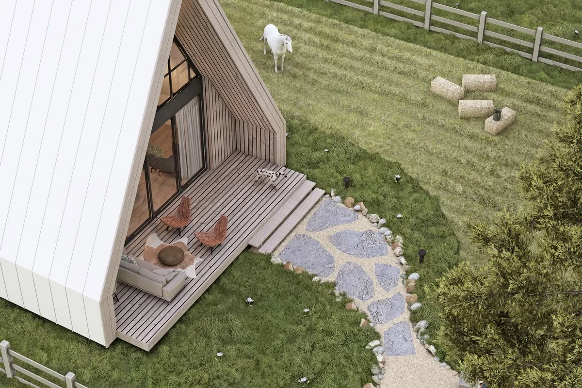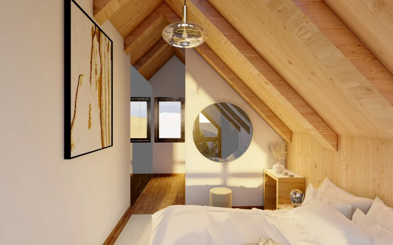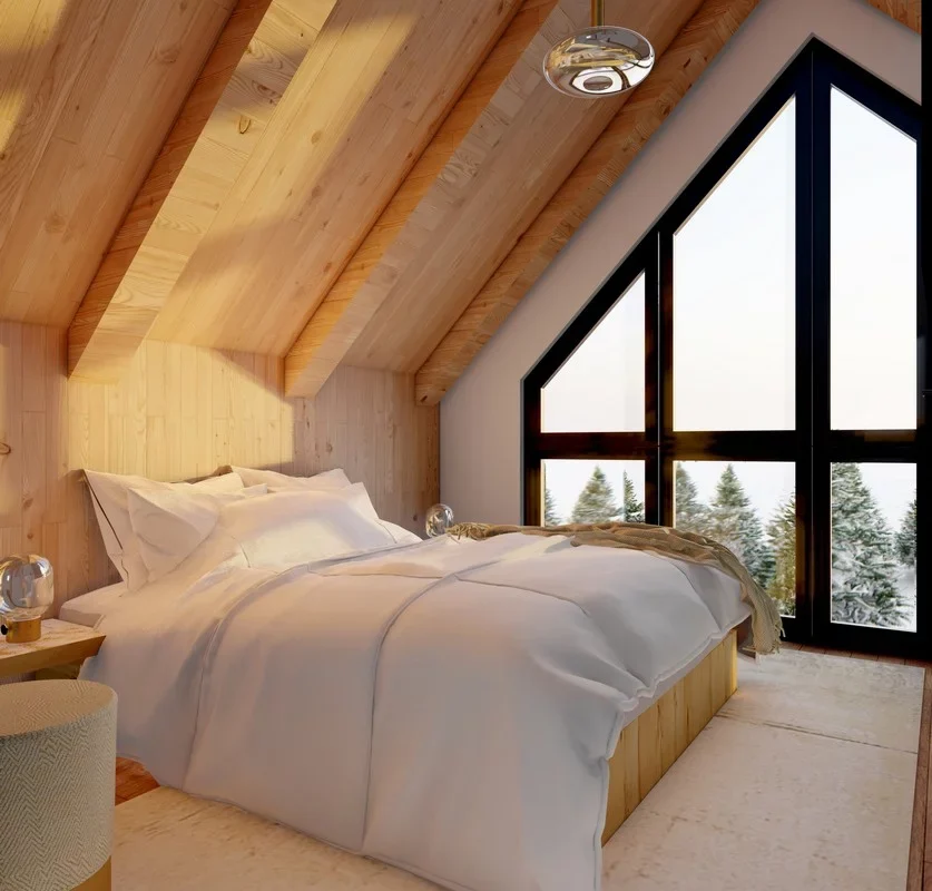 Das Haus wird aus Holz auf einem Betonfundament gebaut. Aluminiumtüren und -fenster verfügen über thermische Trennungen. Holzfassadenwände harmonieren mit der umgebenden Natur und ein Aluminiumdach ist die optimale Lösung für Berggebiete.