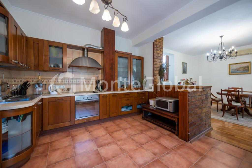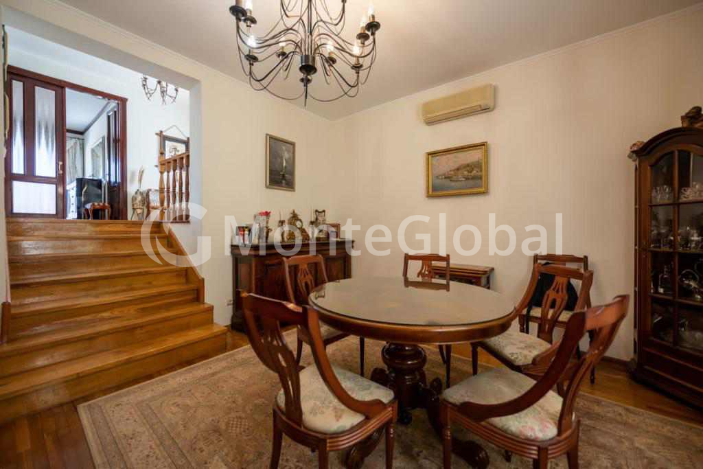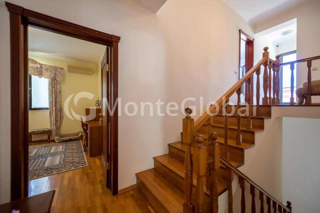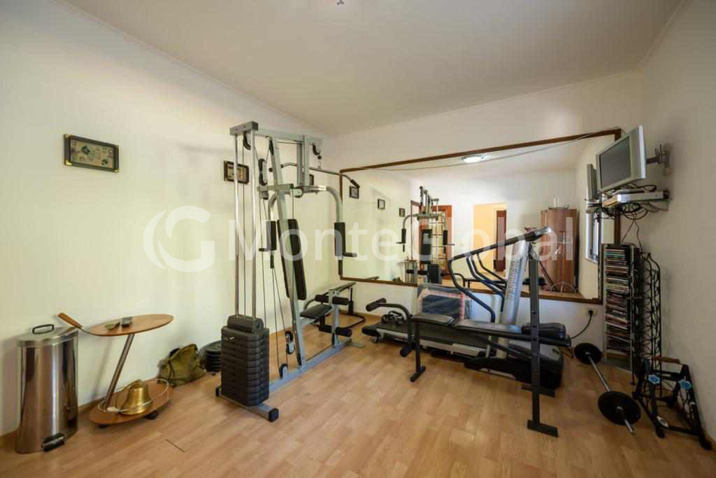 Im Erdgeschoss gibt es ein Wohnzimmer, Sauna, Fitnessraum, Badezimmer und eine große Terrasse vor dem Eingang, sowie eine Garage für 1 Auto.