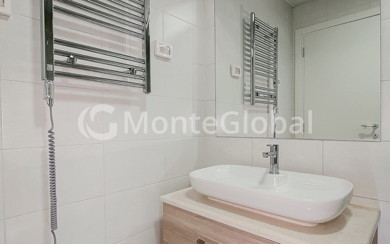 Die Gästetoilette und das Badezimmer verfügen außerdem über maßgefertigte Kommoden aus hochwertigen Materialien, und die Fliesen auf beiden Kommoden bestehen aus Marmor höchster Qualität.