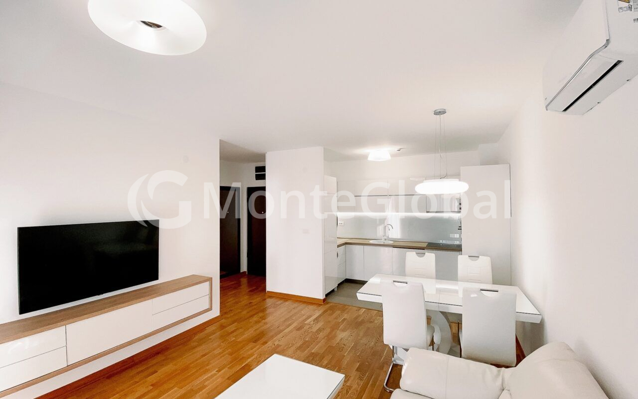 Dieses luxuriös ausgestattete Apartment befindet sich in einem neuen Gebäude in toller Lage in der Nähe des Flusses Moraca und des Gorica-Hügels (Zagorica-Seite).