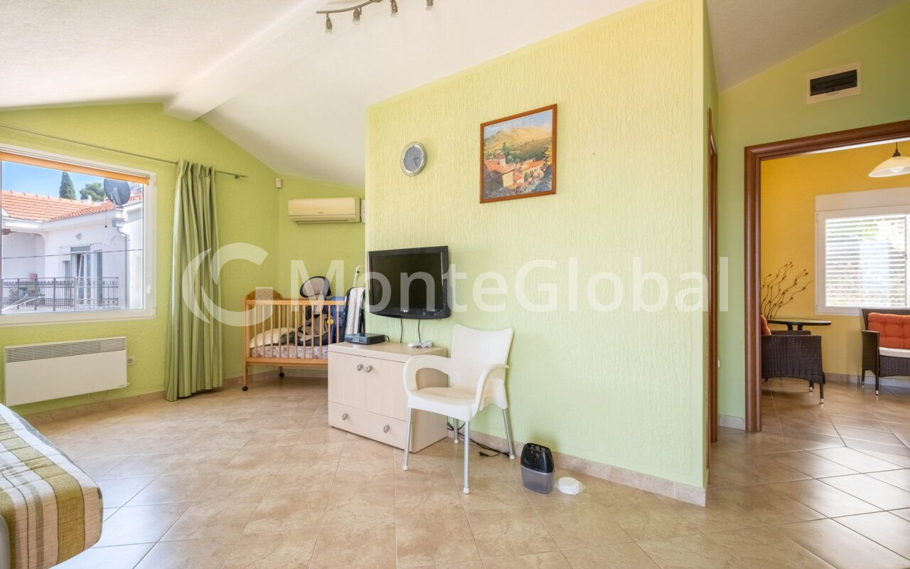 Das 2008 erbaute Haus wurde mit viel Liebe und Sorgfalt erbaut, was seine Zuverlässigkeit und Langlebigkeit garantiert. Keramikwände und hochwertige Oberflächen schaffen ein behagliches Ambiente. Im Inneren finden Sie gemütliche Zimmer mit Klimaanlage und elektrischen Heizkörpern. Das Badezimmer verfügt über eine Fußbodenheizung und bietet so zu jeder Jahreszeit Komfort.