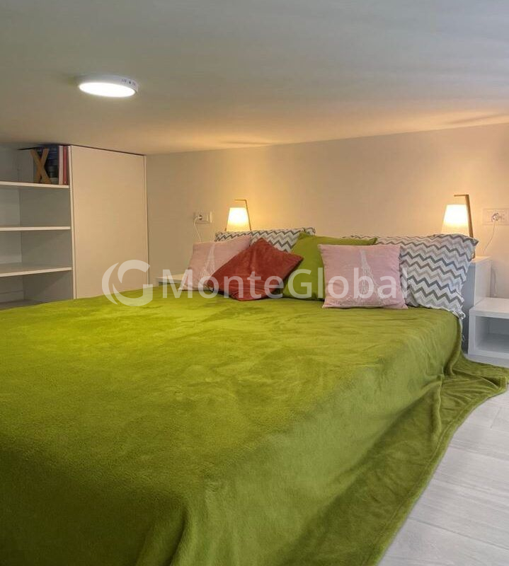 Studio-Apartment mit einer Fläche von 21 m2 + Zwischengeschoss von 10 m2, das den Schlaf- und Wohnbereich trennt, in einem neuen Gebäude im dritten Stock mit Aufzug. Es gibt eine Speisekammer