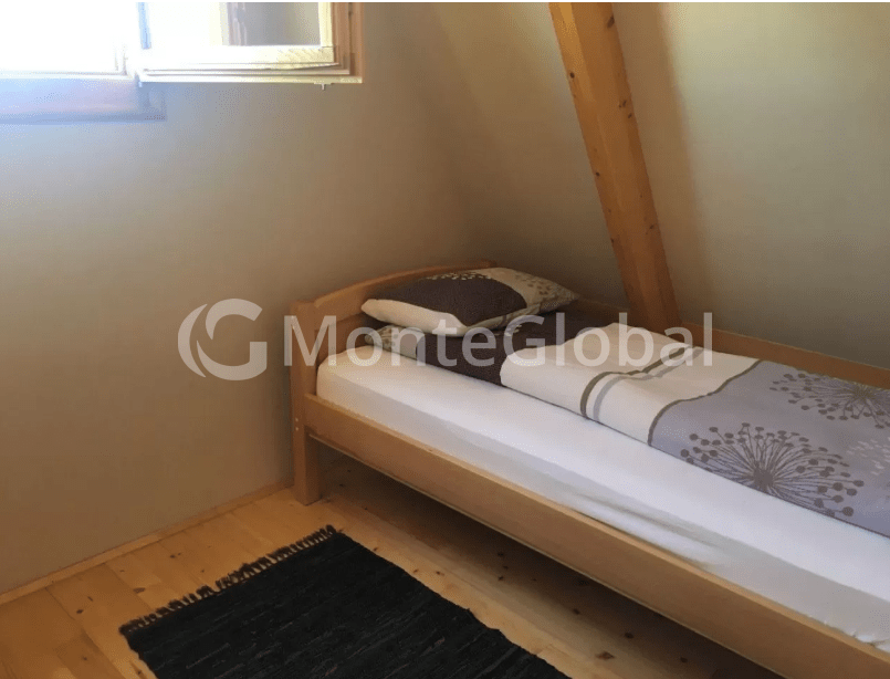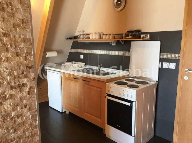 Die erste Etage besteht aus einem Wohnzimmer mit Küche, einem Badezimmer und einer Terrasse. Eingang von zwei Seiten