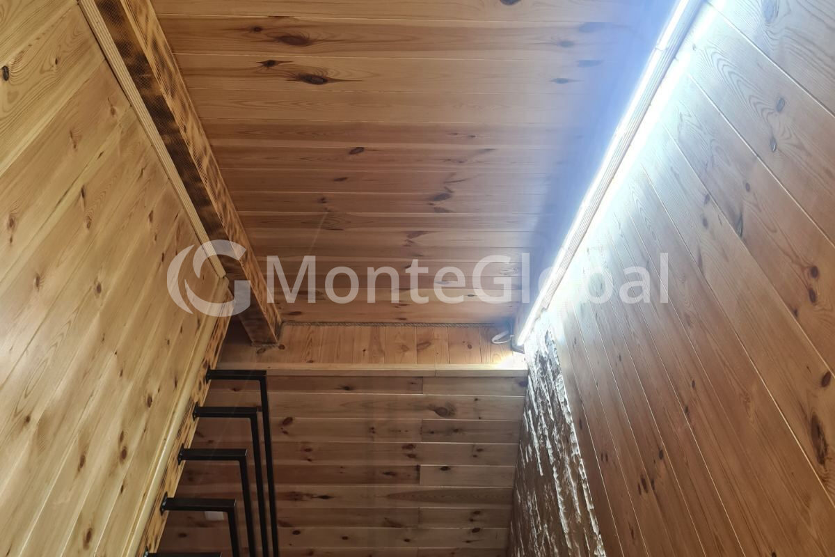 Das Haus ist eine starre Konstruktion – Ziegel, außen 5 cm Polystyrolschaum und Blech, innen 3 m Schaumstoff und der Boden des Bootes, was bedeutet, dass die Wände 30 cm dick sind.